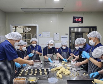 제과제빵 직업 기술 훈련을 하고 있는 친구들